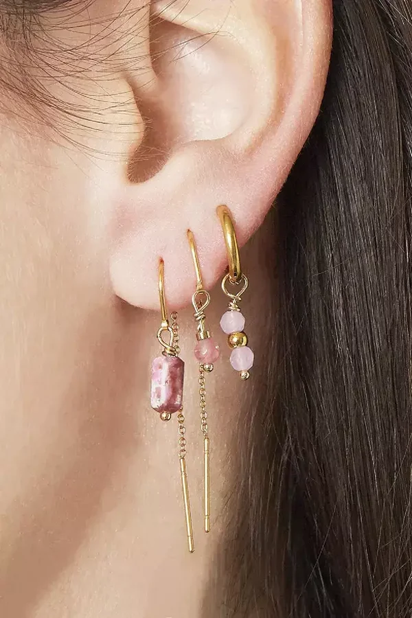 Leuke oorbellen van roestvrij staal met natuursteentje in licht roos .