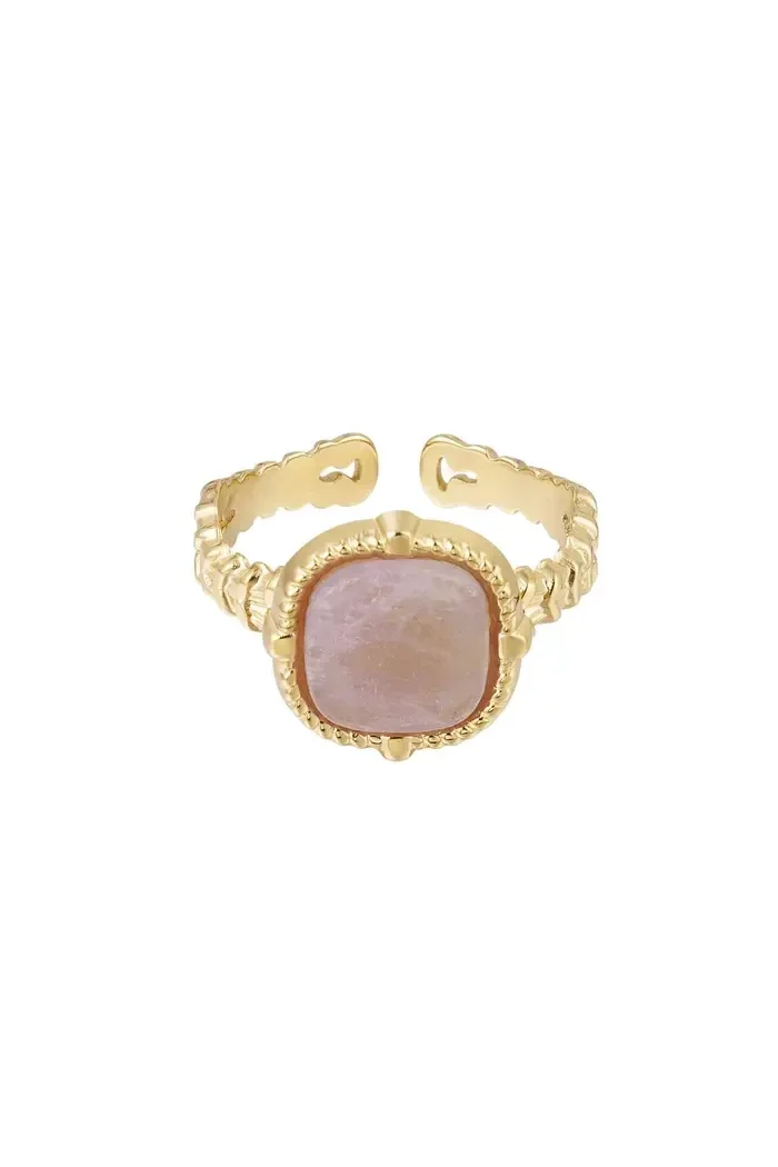 Hoe tof is deze sierlijke statement ring met steen in de kleur roze/paars van Yehwang! Deze ring is een echte Eye-catcher en perfect om jouw outfit mee af te stylen! Doordat de ring verstelbaar is, kun jij gemakkelijk de ring aanpassen naar jouw ringmaat, ideaal toch! Wij zijn helemaal verliefd op deze prachtige ring met sierlijke details! De ring is gemaakt van Stainless steel in combinatie met rozenkwarts.