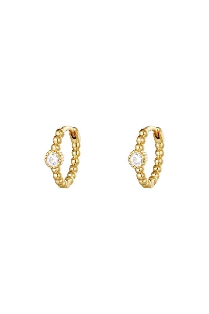 Koperen oorbellen met kleine witte zirkoonsteen. Deze oorbellen zijn heel erg mooi te combineren met andere effen gouden oorbellen of andere oorbellen met witte steentjes.