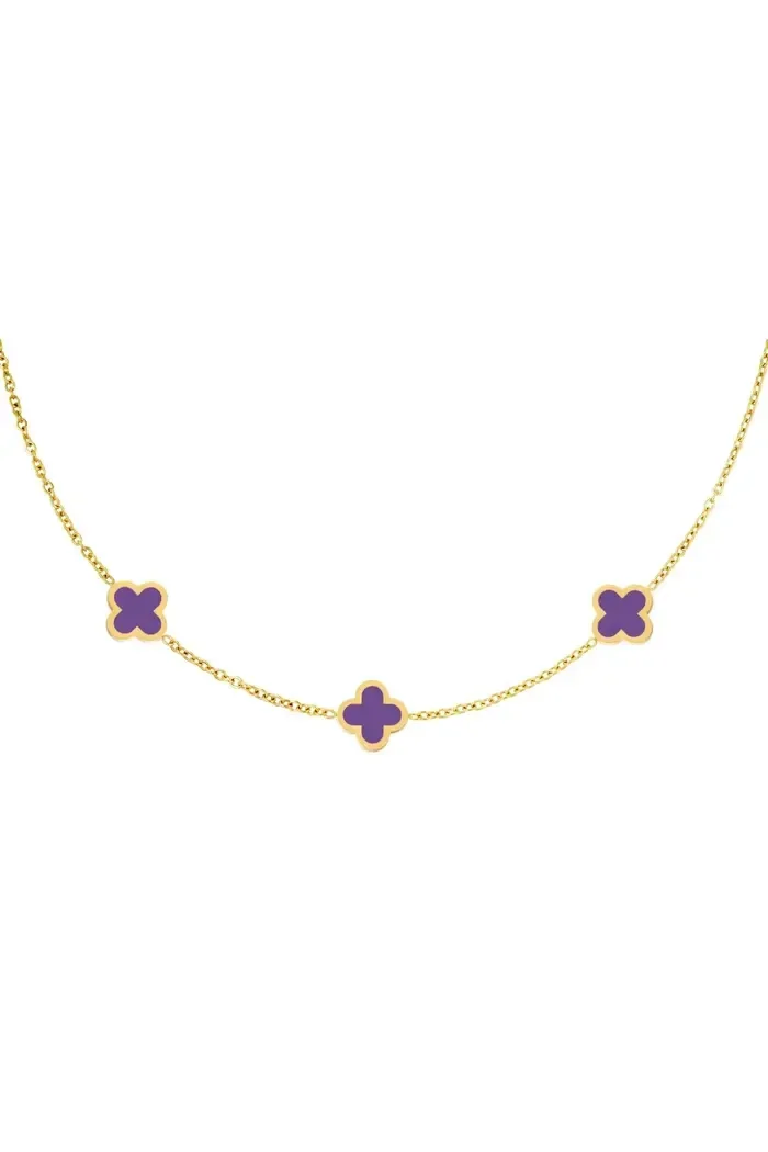 Deze gouden ketting is versierd met drie gekleurde klaver bedels, verkrijgbaar in verschillende kleuren. Het kettinkje is gemaakt van rvs en gekleurd met een laagje enamel. We verkopen ook het bijpassende armbandje! De afmeting van de ketting is 39 cm. Mooi om te combineren met een andere gouden ketting.