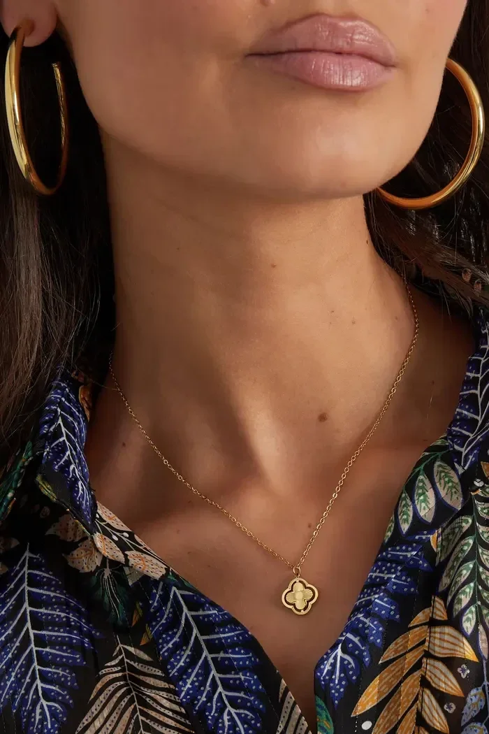 Ben jij nog op zoek naar prachtige gouden kettingen voor jouw shop? Dan is deze gouden ketting met dubbele klaver echt een aanrader! De ketting is subtiel en trendy en kan daarnaast bij elke outfit gedragen worden. De ketting is gemaakt van stainless steel en heeft een verstelbare sluiting. Dankzij deze sluiting kun je de ketting vanaf 39 cm tot en met 44 cm dragen. Verkrijgbaar in de kleuren zilver en goud.