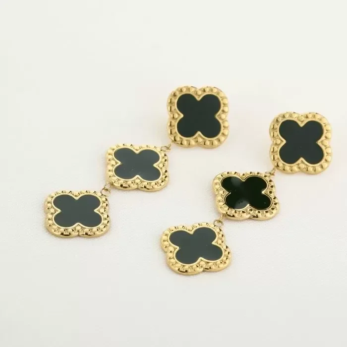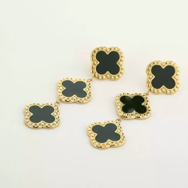 Deze prachtige stainless steel oorbellen met goud/zwarte klavertjes zijn ongelofelijk mooi ! Ze zijn licht en kunnen dus makkelijk de hele dag door gedragen worden