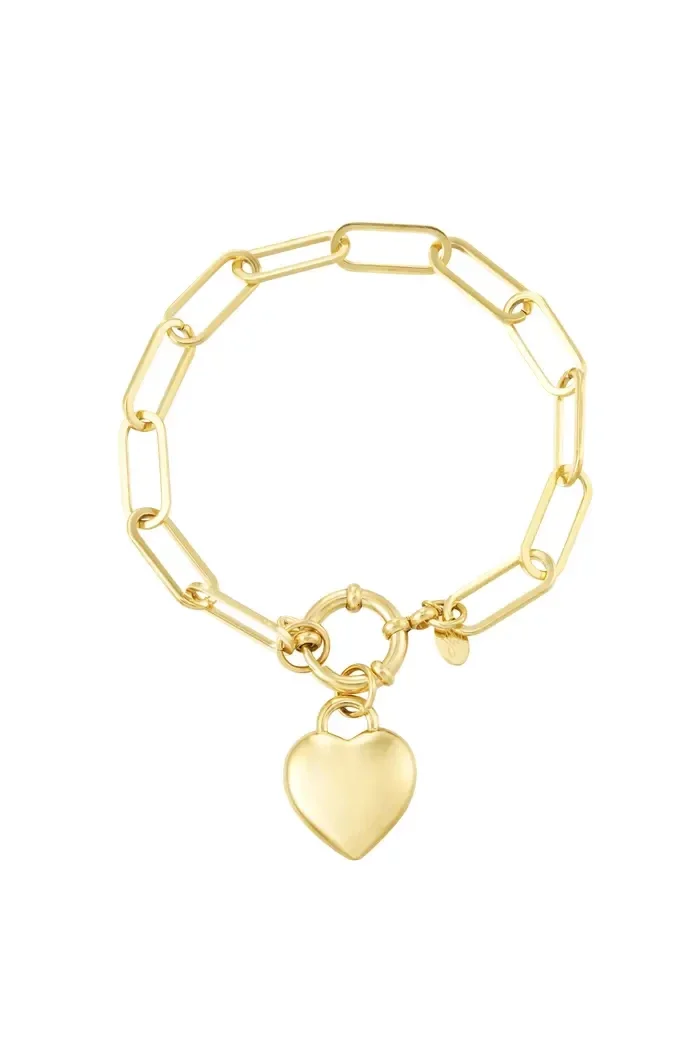 Wauw! Hoe tof is deze stoere gouden schakelarmband met hart bedel van Beau visage. Erg trendy en mega leuk te combineren met meerdere sieraden en accessoires. Deze prachtige armband is gemaakt van Stainless steel en heeft een afmeting van 18,5 cm en is door de ronde sluiting niet verstelbaar.