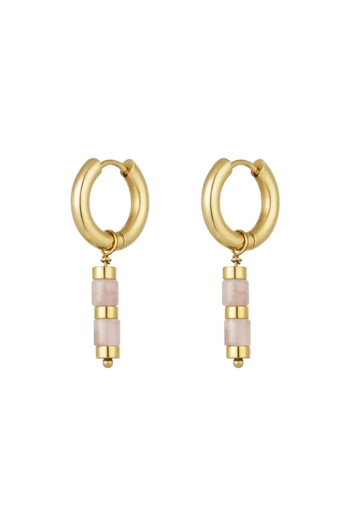 Houd jij net als ons van een prachtige oorbellen party? Shop dan snel deze gouden oorbellen met gouden en lichtroze kraaltjes! Mega trendy en daarnaast perfect te combineren met meerdere subtiele oorbellen voor een prachtige ear party. Ook leuk om deze oorbellen te combineren met meerdere sieraden met kraaltjes. De oorbellen zijn gemaakt van stainless steel, steen en hematiet. De oorbellen hebben een afmeting van 3 cm en zijn verkrijgbaar in de kleuren groen, zwart, lichtroze en beige.
