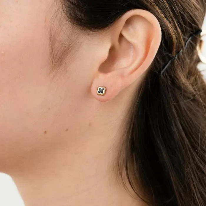 Deze super leuke stud is heel mooi te combineren met de rest van de cover collectie! Of met de langere black and gold clover oorbellen.