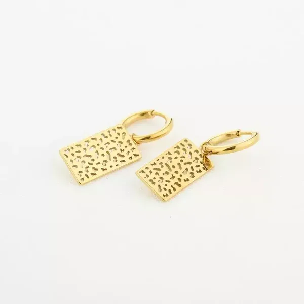 Kleine hoops met een mooie hanger met een uitgesneden luipaard motief. Deze oorbel is eeen echte eyecatcher ! Super mooi.
